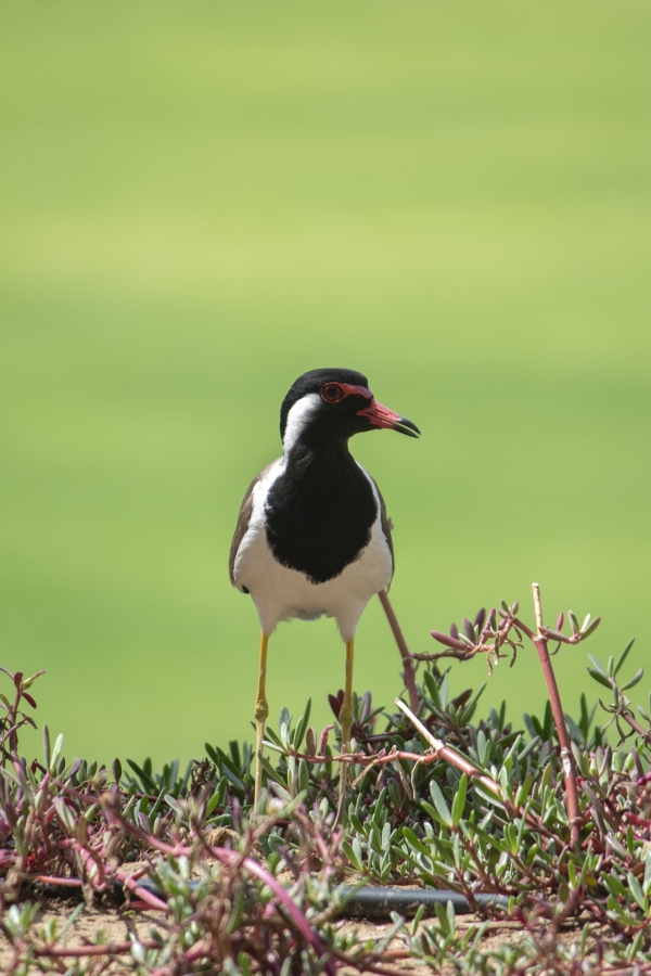 A Common Myna looks up from a residence’s hedge. Pearl Jumeirah offers a surprising amount of biodiversity given its inauthenticity. With no damage or destruction done to the habitat, this man-made island can become a permanent home for these animals.