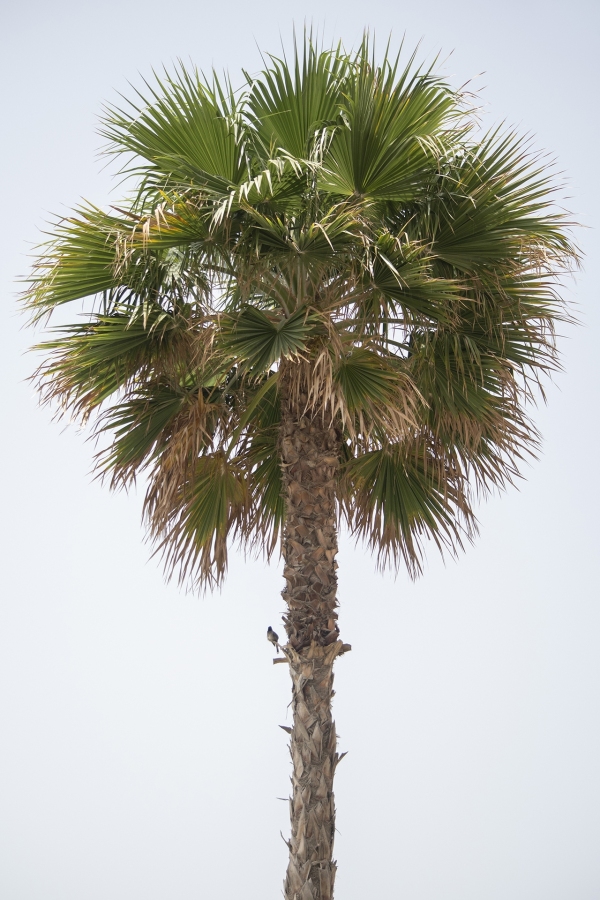 A Red Vented Bulbul looks out from the trunk of a palm tree. In the United Arab Emirates, the palm tree is a symbol of establishment and prosperity and is common throughout the country. The wildlife on Pearl Jumeirah are living examples of the nation’s symbol.